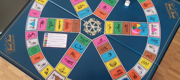 Seit letztem November arbeite ich als freiwillige Mitarbeiterin in der Kanzbi, die neben Büchern auch eine grosse Ludothek beinhaltet. Da bin ich nach vielen Jahren auf das altvertraute Spiel gestossen, habe es ausgeliehen – diesmal die Schweizer Ausgabe- und wieder mal (viele Male!) gespielt. Es machte richtig viel Spass!