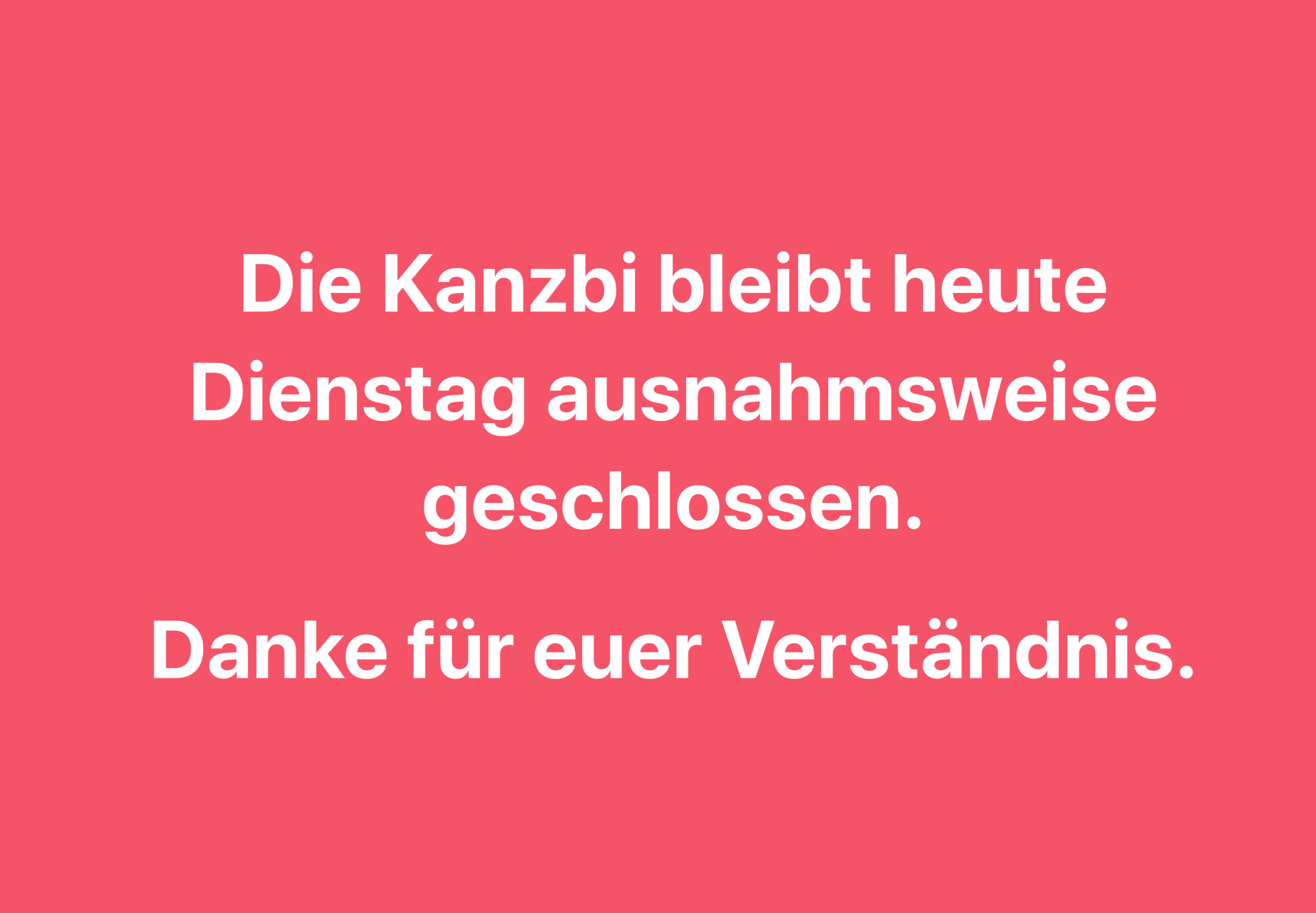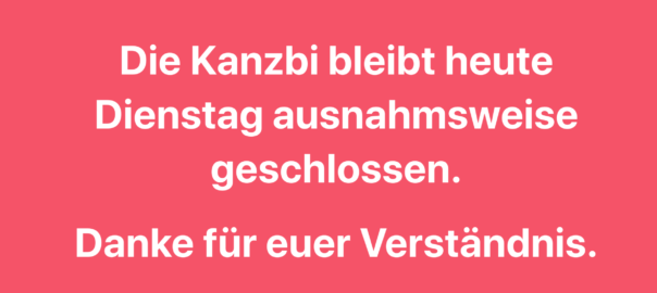 Kanzbi Dienstag 27.10.20 geschlossen